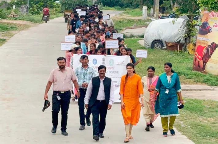 ఘట్ కేసర్, అక్టోబర్ 24 (విజయక్రాంతి) : వరల్ మెంటల్ హెల్త్ డే పురస్కరించుకొని కమ్యూనిటీలో మానసిక ఆరోగ్య ప్రాముఖ్యతపై అవగాహన పెంచడం లక్ష్యంగా అనురాగ్ యూనివర్సిటీ ఎన్ఎస్ఎస్ సెల్ ఆధ్వర్యంలో కుత్బుల్లాపూర్ గ్రామంలో శుక్రవారం అవగాహన ర్యాలీ నిర్వహించారు. ఈకార్యక్రమం మానసిక స్థితిగతి గురించి అవగాహన పెంపుతోపాటు మనసిక దృఢత్వాన్ని ప్రోత్సహించాలనే ఉద్దేశ్యంతో నిర్వహించబడిందని తెలిపారు.