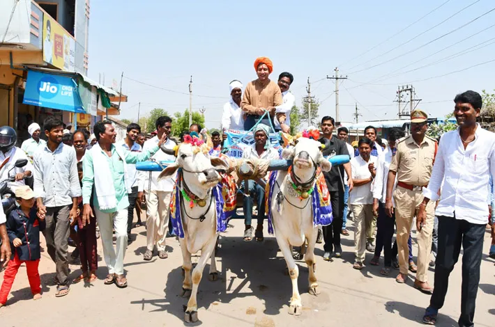 తలపాగా చుట్టి.. ఎడ్ల బండి తోలి