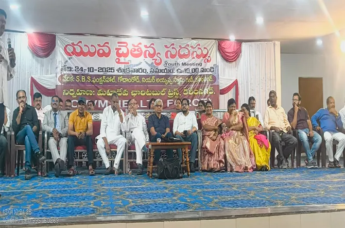 కరీంనగర్ క్రైం, అక్టోబర్24(విజయక్రాంతి):మహాదేవ ఛారిటబుల్ ట్రస్ట్ ఆధ్వర్యంలో కరీంనగర్ ఎస్బిఎస్ ఫంక్షన్ హాల్లో ఘనంగా నిర్వహించిన యువ చైతన్య సదస్సులో మేధాకవులు, మేధావులు, వందలాది యువతీ యువకులు పాల్గొని ప్రేరణతో ఊగిపోయారు. ట్రస్ట్ వ్యవస్థాపక అధ్యక్షుడు ఉరుమల్ల విశ్వం సారథ్యంలో జరిగిన ఈ సాదస్సుకు ముఖ్య అతిధిగా జన విజ్ఞాన వేదిక వ్యవస్థాపాక అధ్యక్షుడు వెన్న పూస బ్రాహ్మరెడ్డి పాల్గొన్నారు.