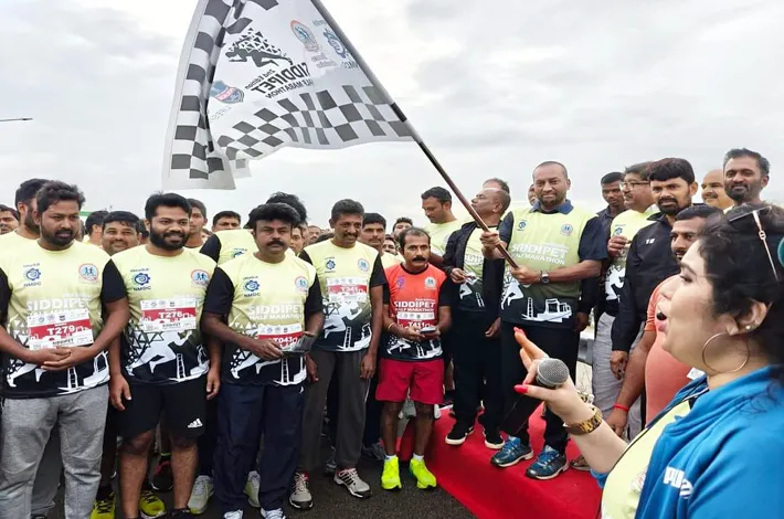 సిద్దిపేటరూరల్, జూలై 28: యువత మత్తు పదార్థాలకు దూరంగా ఉండాలని మెదక్ ఎంపీ రఘునందర్ రావు అన్నారు. సిద్దిపేట పోలీస్శాఖ, రన్నర్స్ అసోసియేషన్ సంయుక్త ఆధ్వర్యంలో ఆదివారం చిన్నకోడూరు మండలంలోని రంగనాయకసాగర్ వద్ద ఏర్పాటు చేసిన హాఫ్ మారథాన్ కార్యక్రమంలో ఆయన ముఖ్య అతిథిగా పాల్గొ న్నారు. ఈ సందర్భంగా 5కే, 10కే, 21కే రన్ పోటీలను ప్రారంభించి మాట్లాడారు. యువ త ఆరోగ్యకరమైన అలవాట్లు అలవర్చుకోవాలని సూచించారు. ప్రతిరోజు రన్నింగ్, వాకింగ్, వ్యాయామాల వంటివి అలవాటు చేసుకుంటే ఆరోగ్యవంతులుగా ఉంటారని, వైద్యుల దగ్గరు వెళ్లాల్సిన అవసరం రాదని తెలిపారు. పోటీలో సుమారు 3 వేల మంది యువతీయువకులు పాల్గొనగా, విజేతలైన వారికి ఎంపీ చేతుల మీదుగా బహుమతులు అందజేశారు. ఈ సందర్భంగా పర్యావరణాన్ని పరిరక్షించాలని పోటీలో పాల్గొన్న యువతకు అటవీశాఖ ఆధ్వర్యంలో మొక్క లు పంపిణీ చేశారు. కార్యక్రమంలో ఎమ్మె ల్సీ కూర రఘోత్తంరెడ్డి, రన్నర్స్ అసోసియేషన్ ప్రతినిధులు తదితరులు పాల్గొన్నారు.